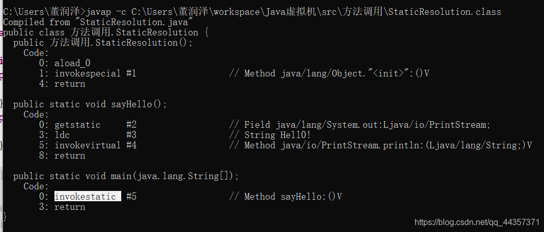 可以看到,确实是通过invokestatic命令调用sayhello方法。