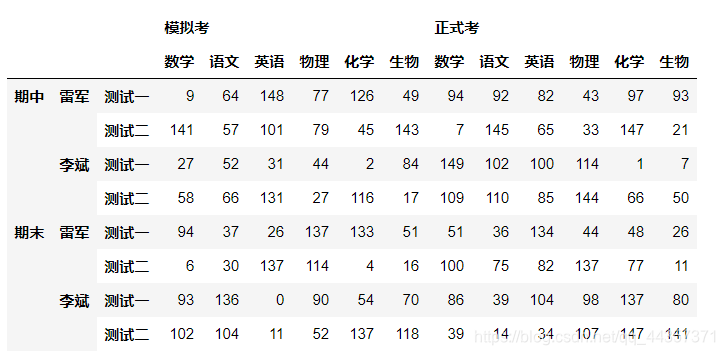 columns = pd.MultiIndex.from_product([['模拟考','正式考'],
