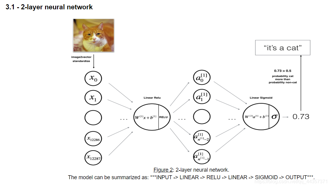 1 | def two_layer_model(X, Y, layer_dims, learning_rate = 0.0075, num_iterations=3000, print_cost=False): |